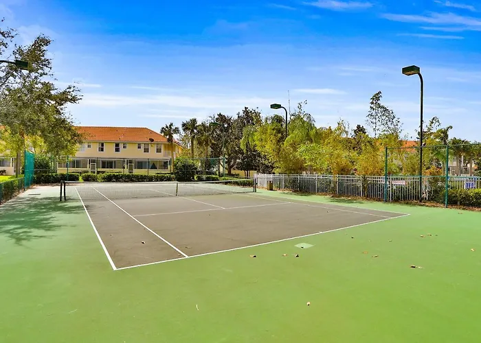 Le site dispose de cet espace de pique-nique, ce court de tennis et ces écrans plats satellites.